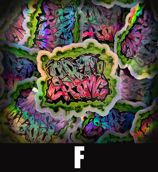 F- "ART CRIME" Holographic "ART CRIME" oldie but a goodie sticker. 3X3 INCHES