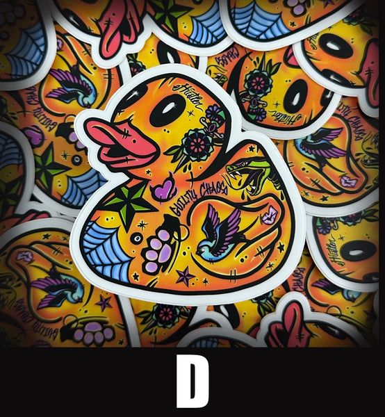 D- INKED DUCK COLOR PACKED,OLD SCHOOL NEW SCHOOL GUILTY CHAOS DUCK. 3X3 INCHES