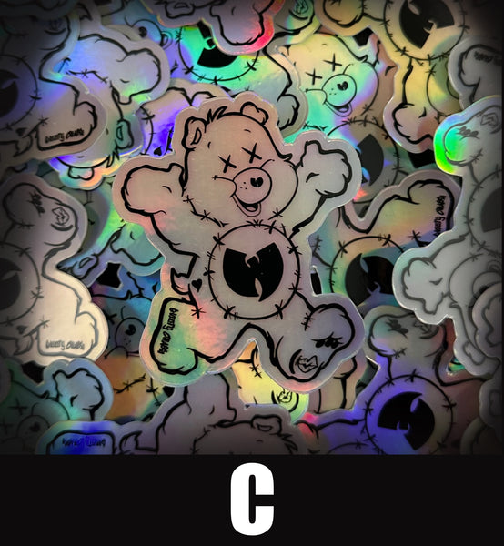 C- WU TANG CARE BEAR Holographic WU-TANG/ CAREBEAR INSPIRED MASH UP 2.52X3 INCHES