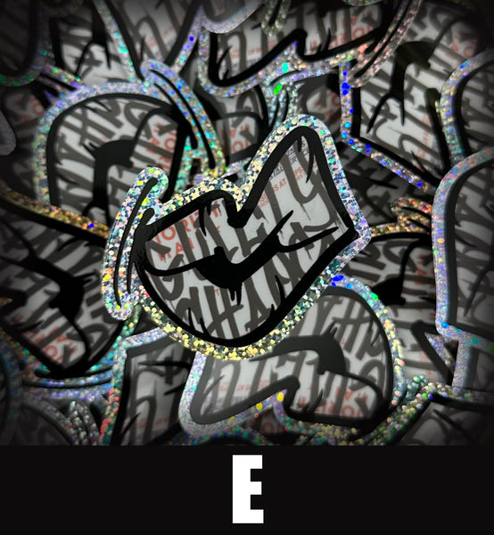 E- GRAFFITI TAGGED LIPS Glitter border with the OG Guilty Chaos lips and slap back. 3x2.83 INCHES